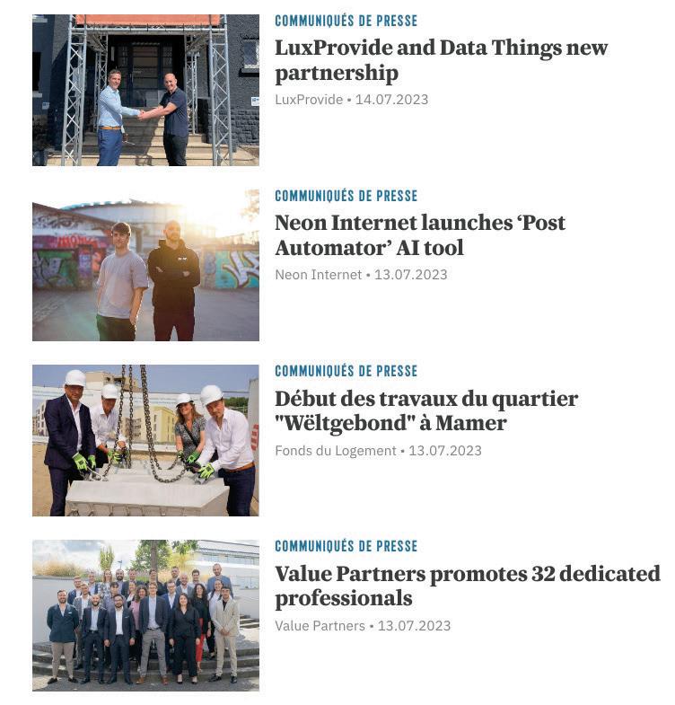 Si les a aires sont devenues plus complexes sous l’e et de l’inflation, de la hausse des taux d’intérêt, de la diminution des investissements et des perturbations causées par l’instabilité géopolitique, nous restons convaincus que le Luxembourg regorge de forces vives, de motivation et de créativité pour assurer son développement économique.