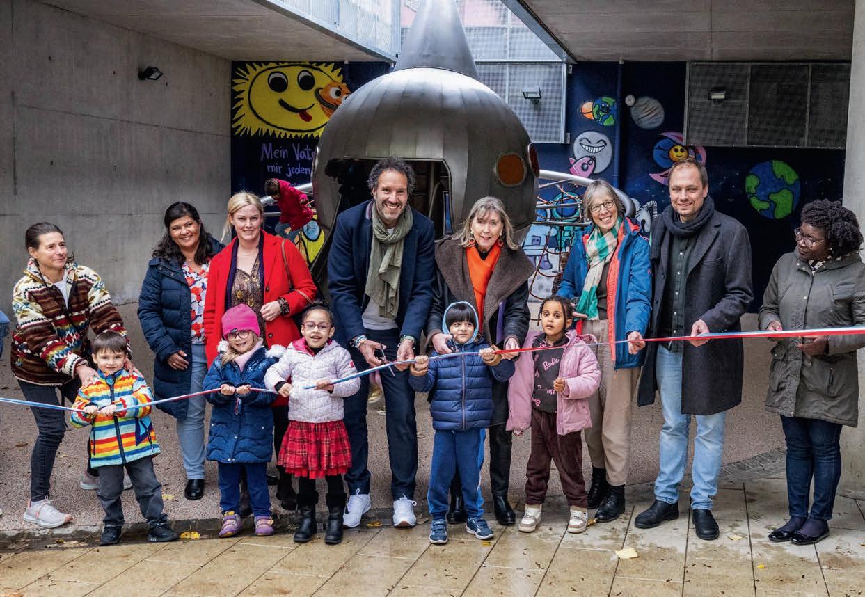 Le collège des bourgmestre et échevins a inauguré le 24 octobre la nouvelle cour de récréation du cycle 1 de l’école fondamentale Eich. Un toboggan-tunnel courbé reliant deux niveaux, une navette spatiale équipée d’un périscope et d’un filet à grimper, une maisonnette en forme