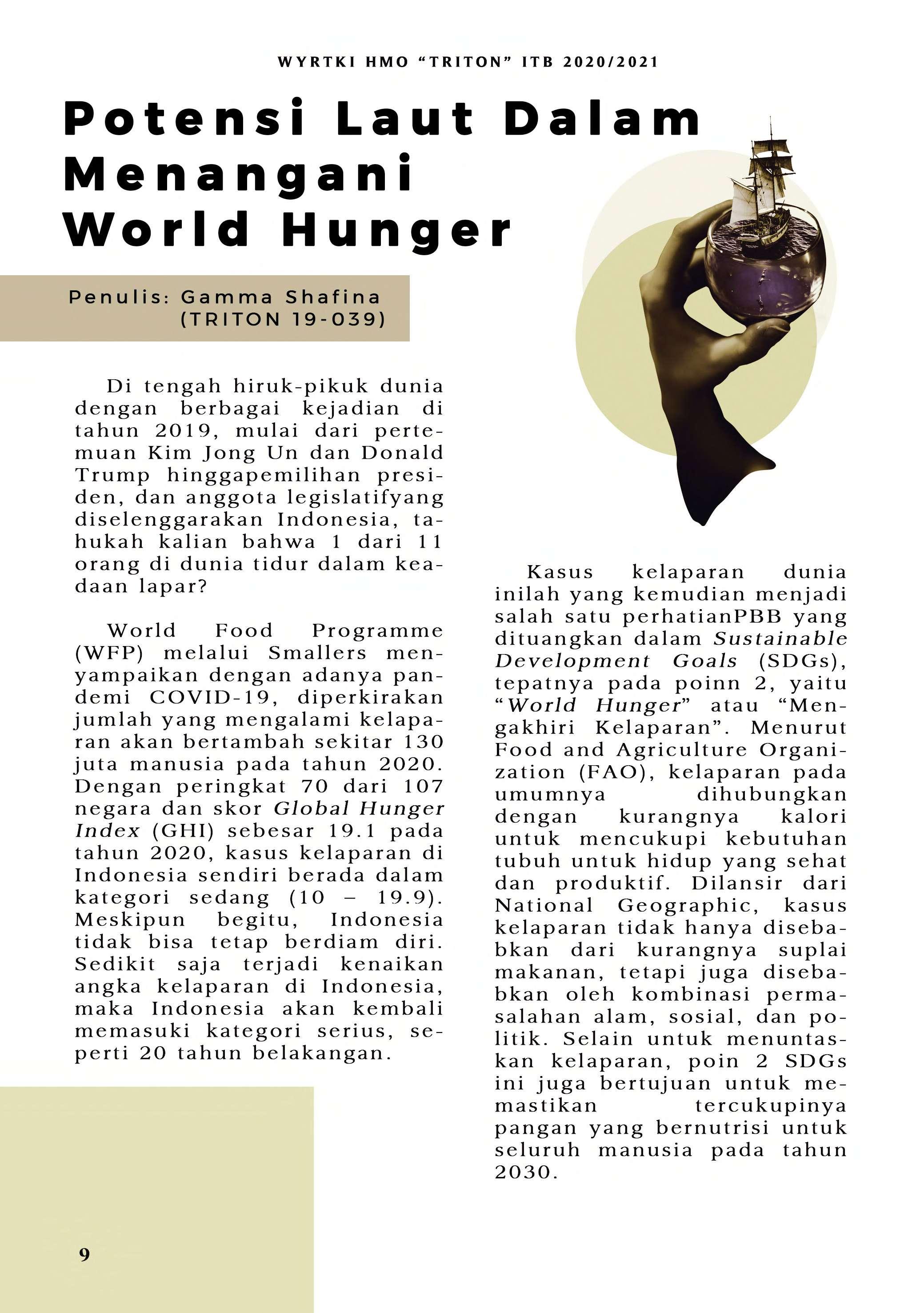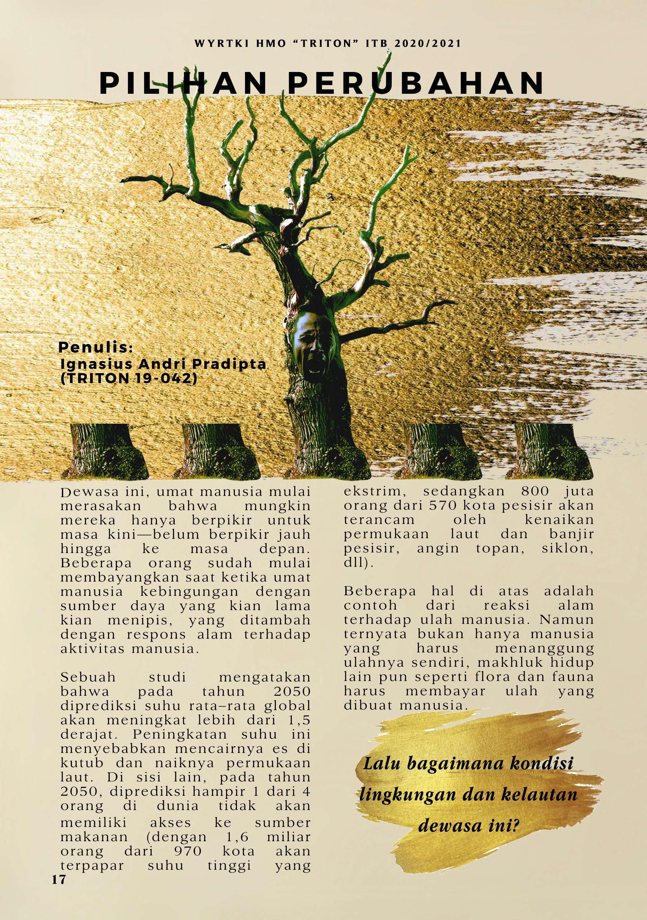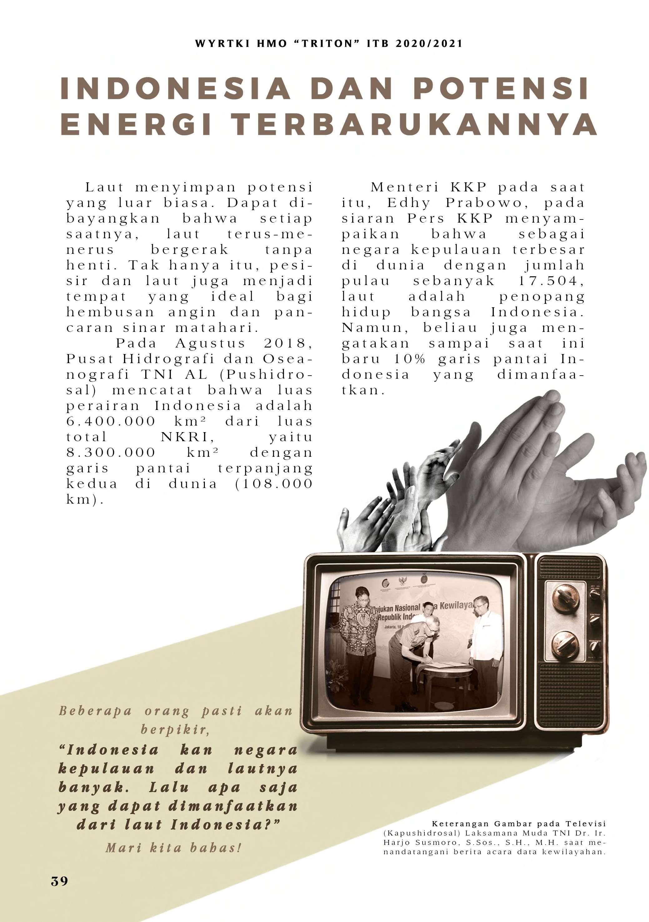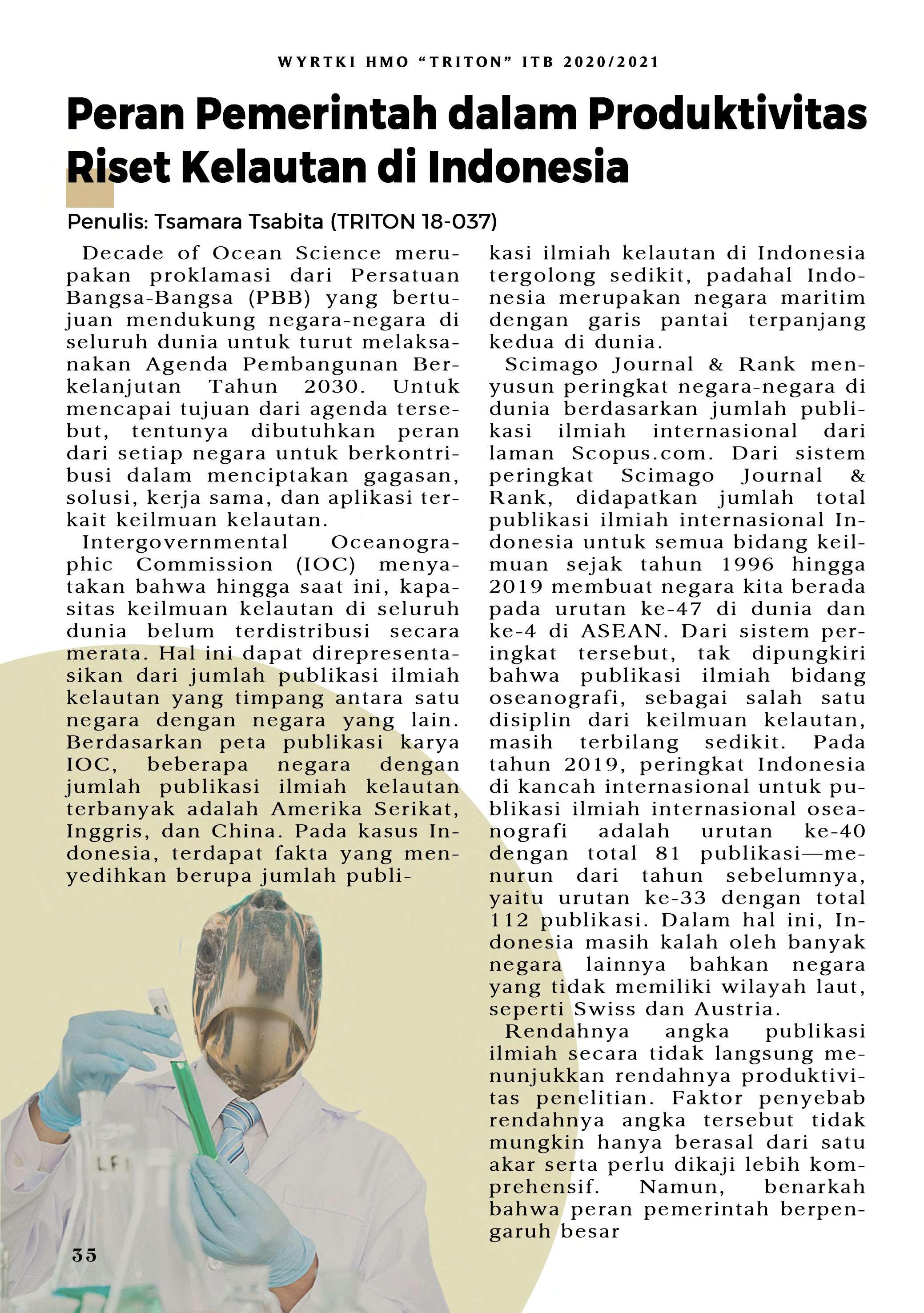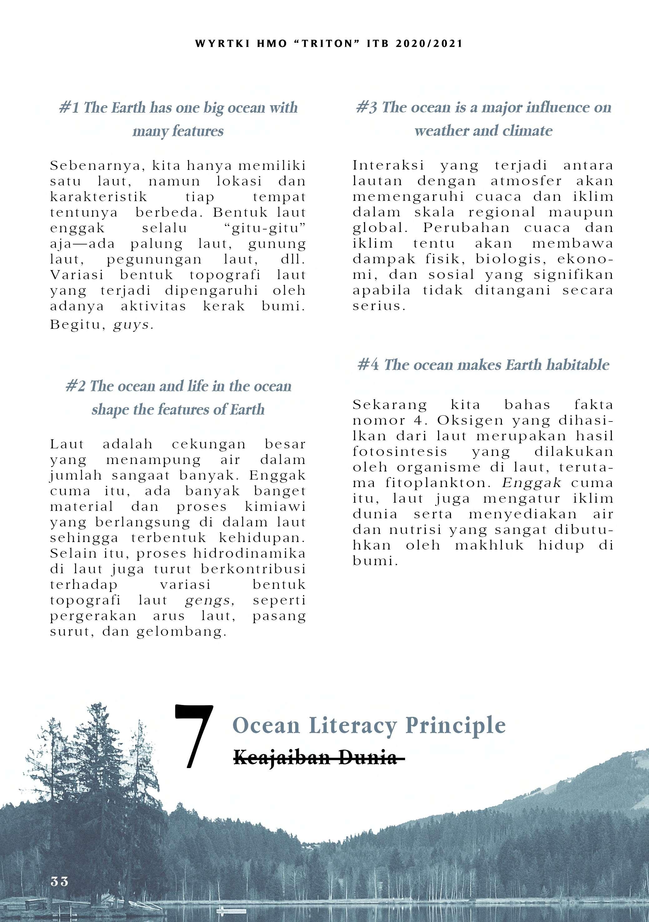 Bila di edisi sebelumnya mengupas mengenai SDG No. 14, HMO "TRITON" ITB pada tahun ini menerbitkan WYRTKI dengan tema "Dekade Ilmu Kelautan untuk Pembangunan Berkelanjutan 2021-2030". Tema ini diambil dari gerakan yang digagas oleh PBB. Untuk menunjang terwujudnya gerakan tersebut, WYRTKI 2020/2021 membahas dari segi kolaborasi, kebijakan, serta Ocean LIteracy. Selamat membaca!