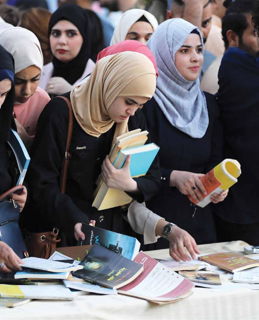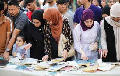 Iraqis check free books during the ‘I’m an Iraqi, I read’ festival at Abu Nuwas park in central Baghdad, Iraq, 05 November 2022. The annual event includes a free book fair, where more than 35,000 books will be distributed for free to the attendants to en courage the Iraqi people to read. EPA
