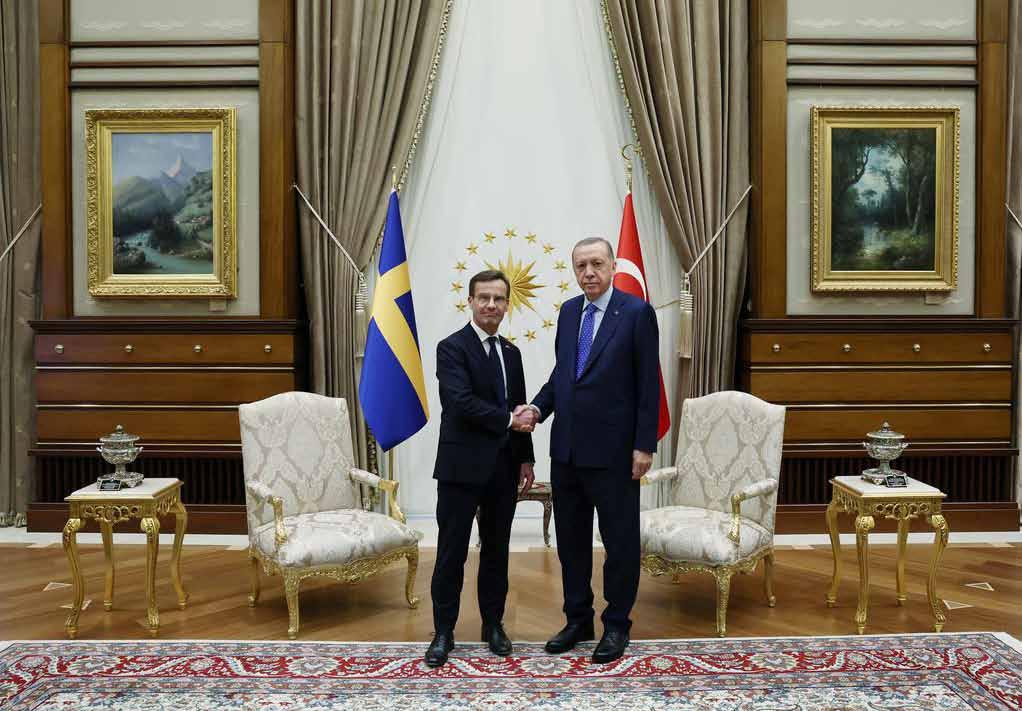 Turkish President Tayyip Erdogan and Swedish Prime Minister Ulf Kristersson meet at the Presidential Palace in Ankara, Turkey, November 2022 ,8.