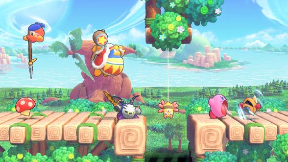 Une fuerzas con hasta tres amigos para que luchen a tu lado en la misma consola mientras tú controlas a Kirby. Tus acompañantes podrán encarnar a uno de los amigos de Kirby: el Rey Dedede, Meta Knight y Waddle Dee pañuelo, u optar por un Kirby de un color distinto.