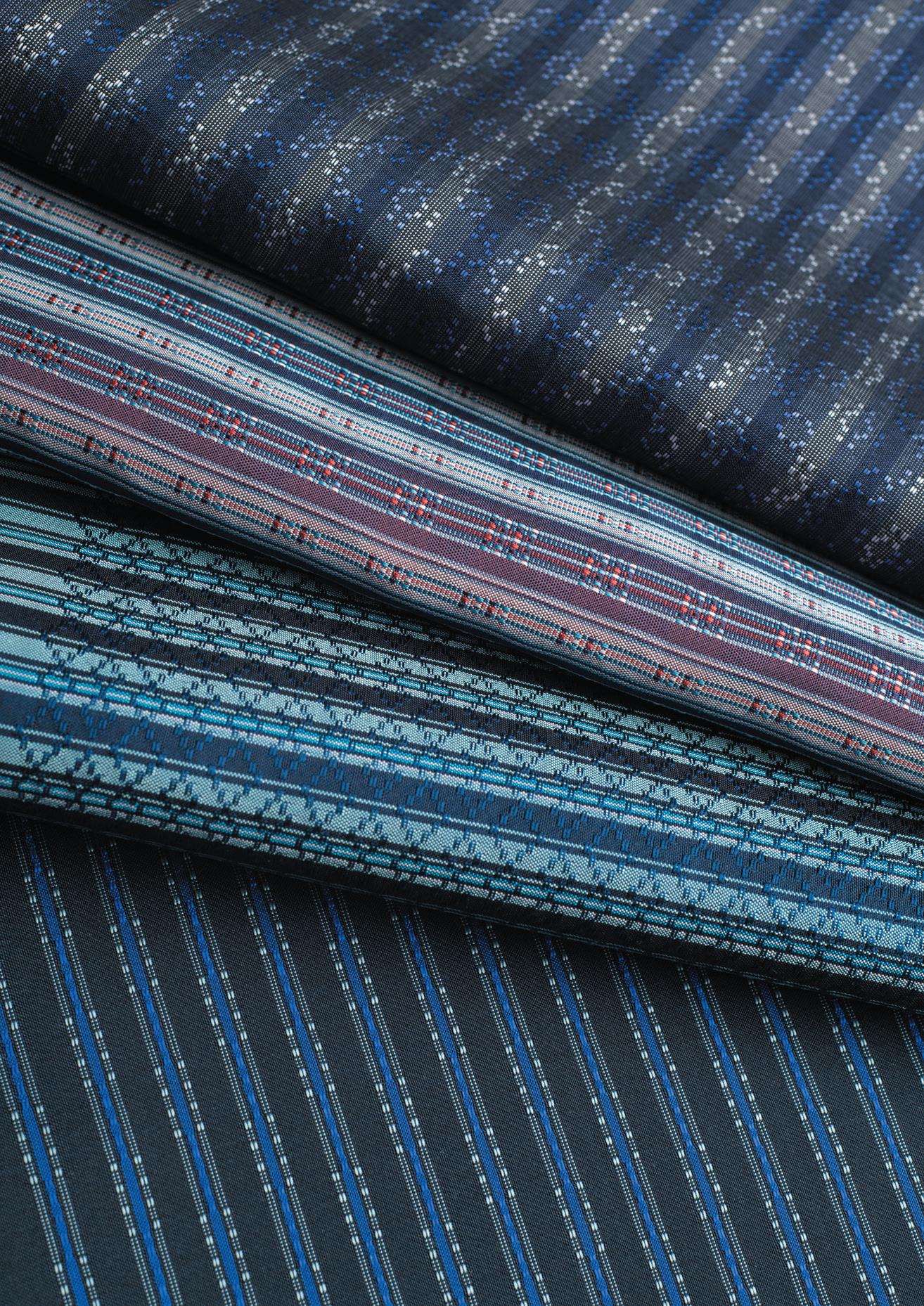 ブーゲンビリアやストレリチア、ホウ ライカガミなどのボタニカルモチーフ に、オオゴマダラの隠し柄をふわりと 潜ませて。着る人を選ばない上品な雰 囲気が、幅広い年代の方にフィットし ます。