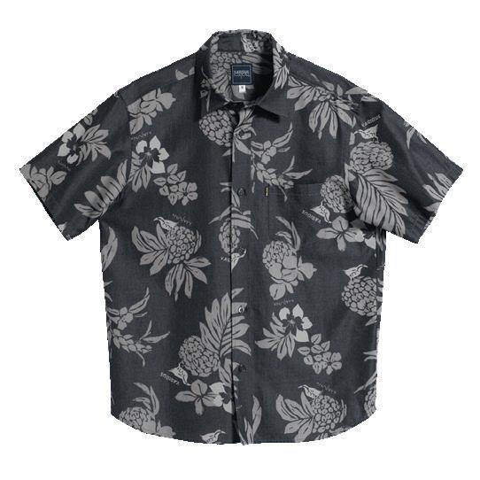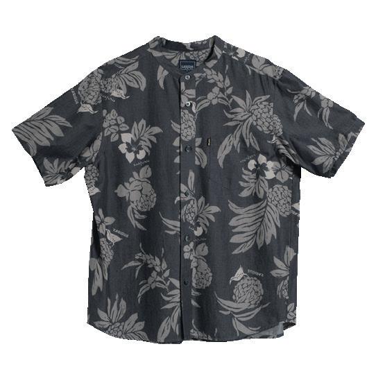かりゆしウェアでは珍しいストライプ柄を基 調にしてシックな雰囲気に。草花の中を活 き活きと飛び交う野鳥がさりげなくデザイン されています。