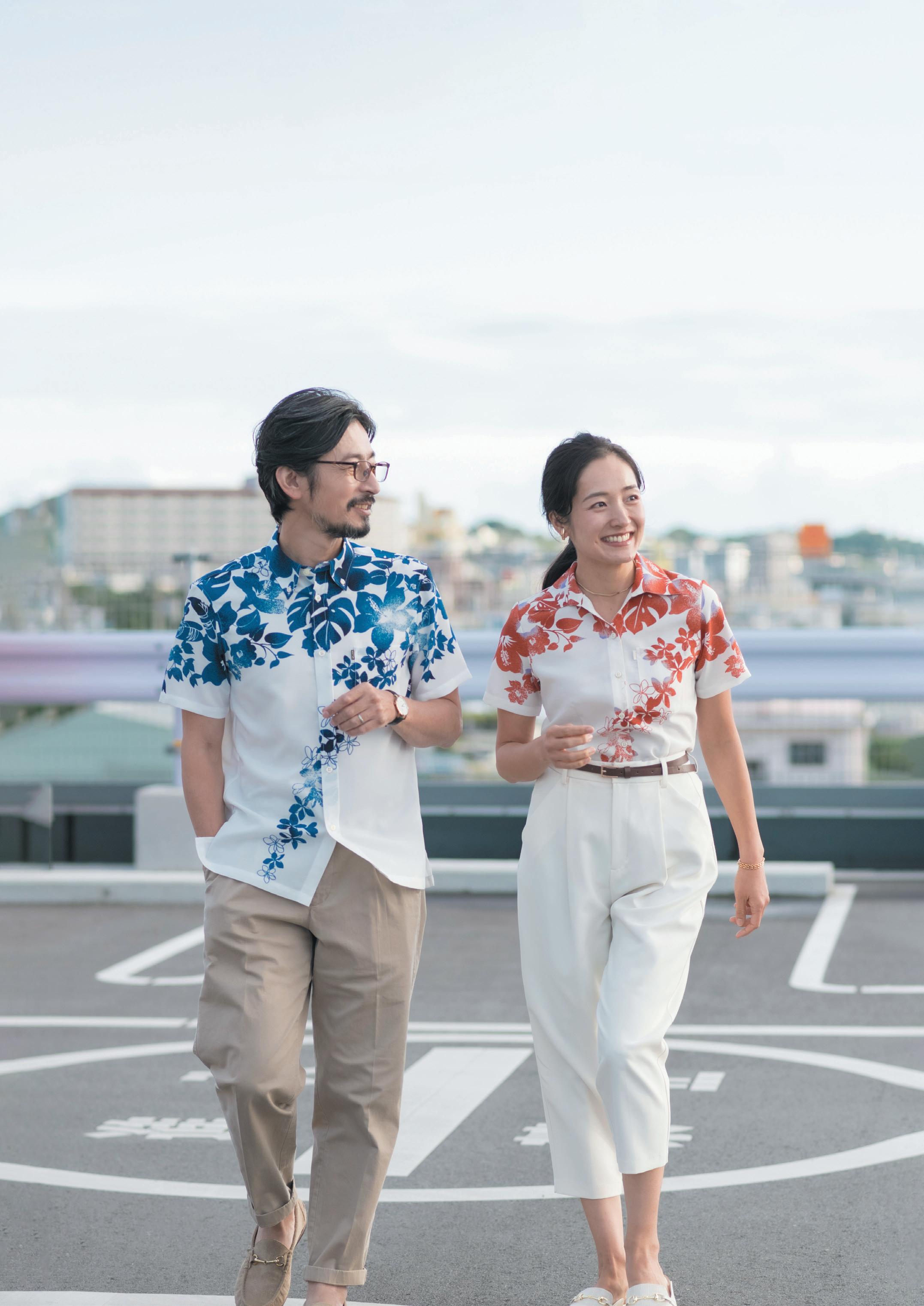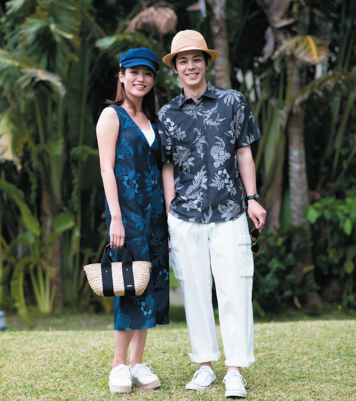 伝統ある沖縄織物のモチーフを、 大胆なデザインで着こなして。
