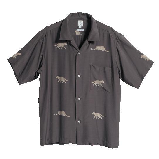 イリオモテヤマネコ柄のシャツ”をモチーフに したユニークなデザイン。裾位置に線描きのモ チーフを配置して抜け感のあるボーダー風に。
