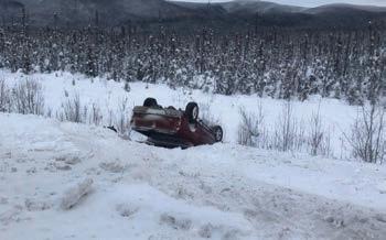 and make a fix for the heater in Whitehorse. By the time he reached Destruction Bay in Yukon Territory, the thermometer read negative 25 degrees. A few hours later, as he past the Canadian border guard shack, the temperature warmed to about 10 above but that’s also when everything suddenly went wrong.