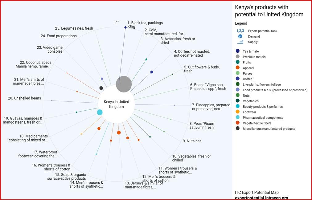 Kenya seeks to diversify her market within the region by focusing on value addition of products such as flowers, avocados, vegetables, tea, coffee and mangoes to reach a wider market hence increasing export trade.