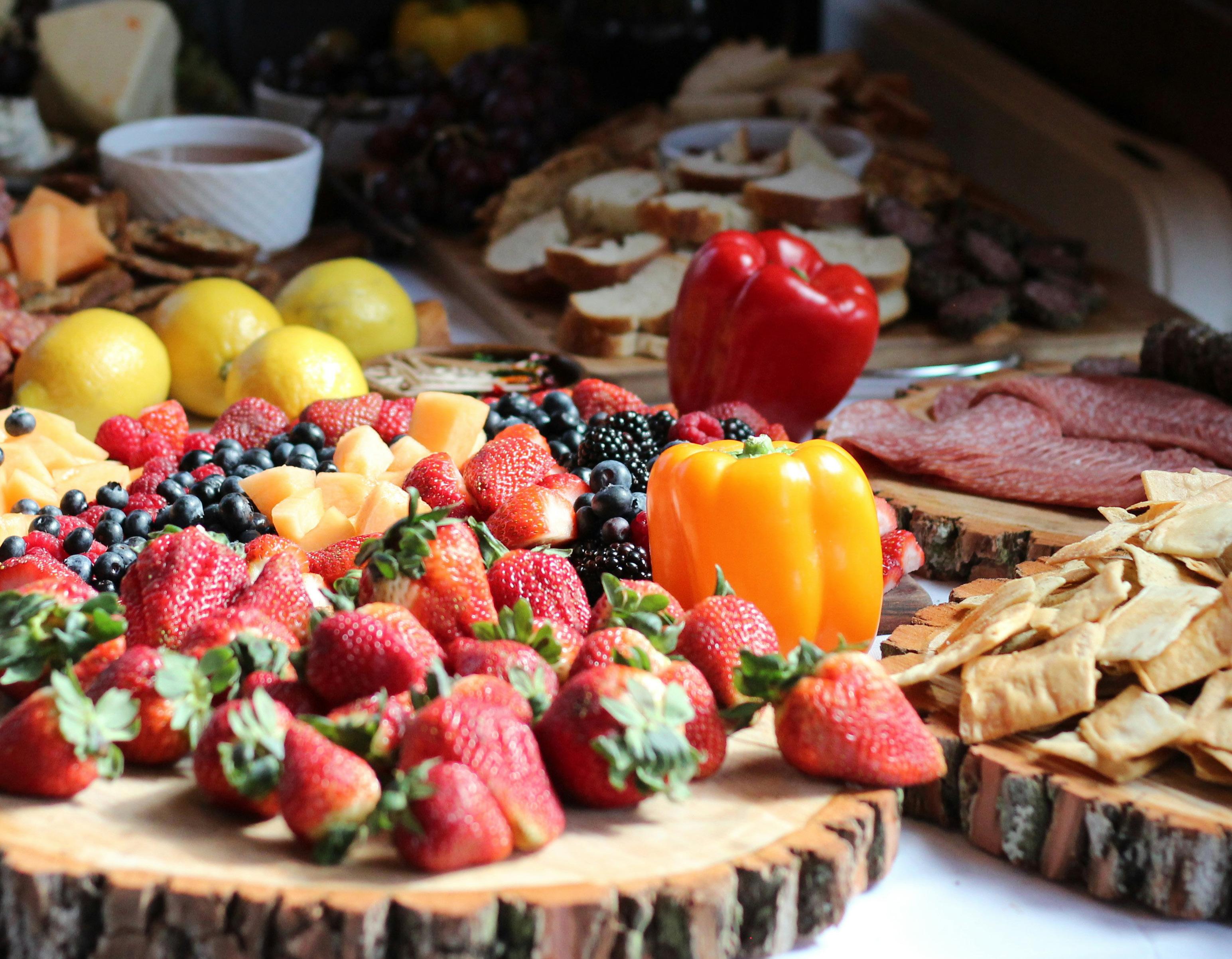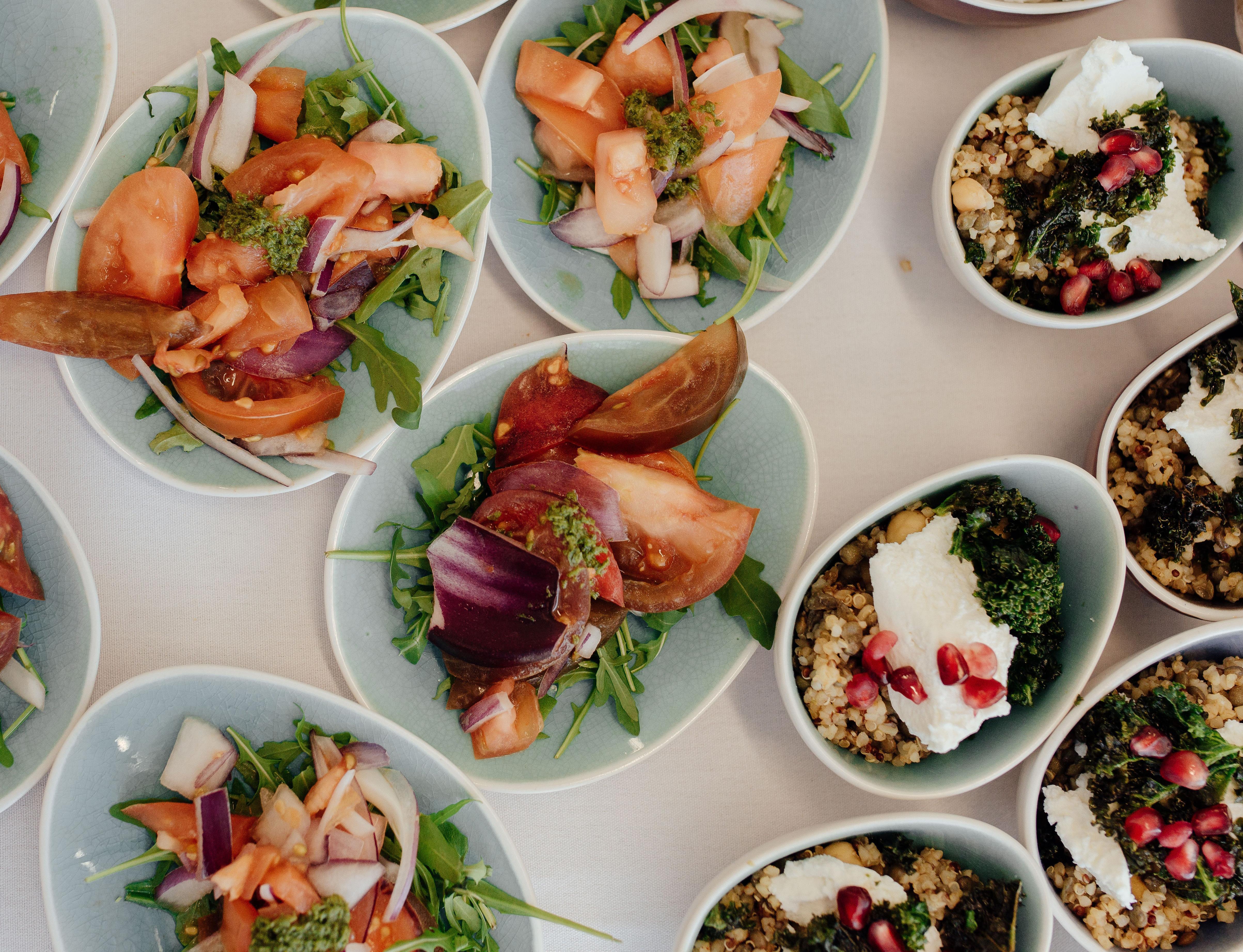 Avocado Toast Bar: artisan toasts, smashed avocado, cherry tomatoes, radishes, and chili flakes