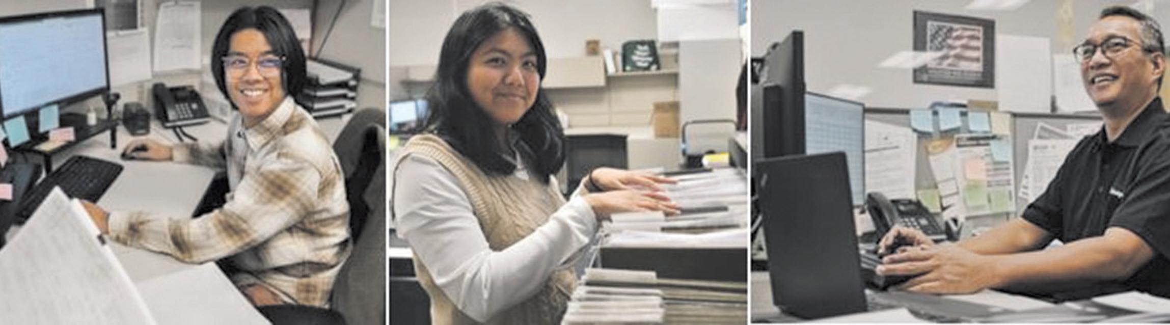 Three Filipinos who work at PFT. From left, accounting associate Eric Santiago, administrative associate Ellaiza Caragan, and purchasing agent Sherwin Pacis. Photos by SueJean Naglieri
