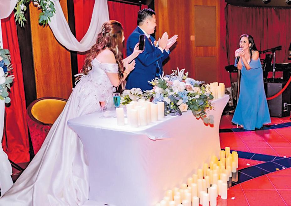 have their selfies taken with her. FilAm Hollywood designer and Project Runway Season 19 contestant Kenneth Barlis designed the wedding gown, bringing Jessy’s vision of a unique yet elegant cruise-inspired look to life. She wanted a gown that stood out from traditional wedding dresses, with a high-low hemline and a touch of simplicity. The design embraced the “cruise vibe.”