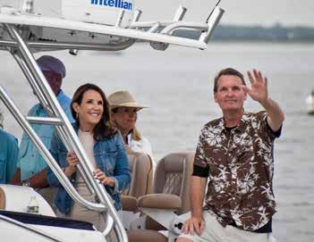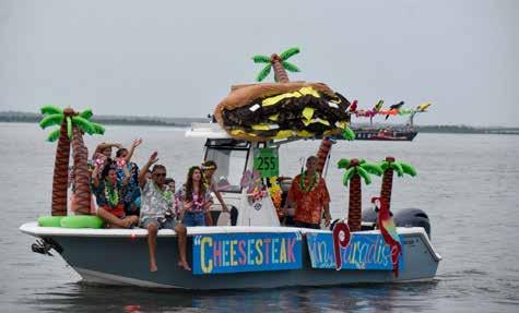 participation from the community, with elaborately decorated boats and bayfront homes.