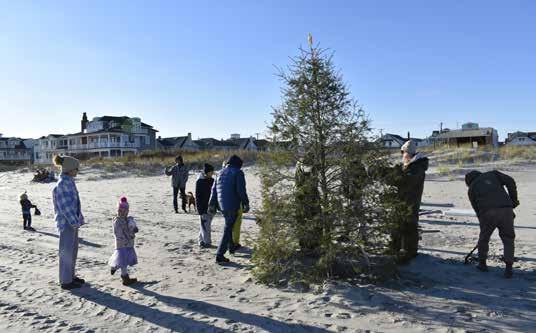 Upon arriving at North Street b each, follow the signs that will lead you to a ten-foot-tall evergreen tree, donated by eisele’s Christmas Tree Farm in Petersburg. The tree is planted with a clear tube and bucket underneath the sand to collect water, ensuring health and vitality all season long.