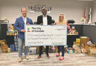 The City of Irondale raised awareness for hunger during the Jan. 20 council meeting with a donation of food and money to the Community Food Bank of Central Alabama. The donation was the result of a two month “Feed the Need” Food Drive.