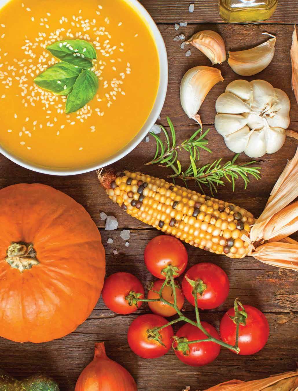 For entertaining, fruits and vegetables can make beautiful serving pieces and decorations. Larger squashes like acorn can be the base for serving the scoopedout and puréed or sautéed flesh,