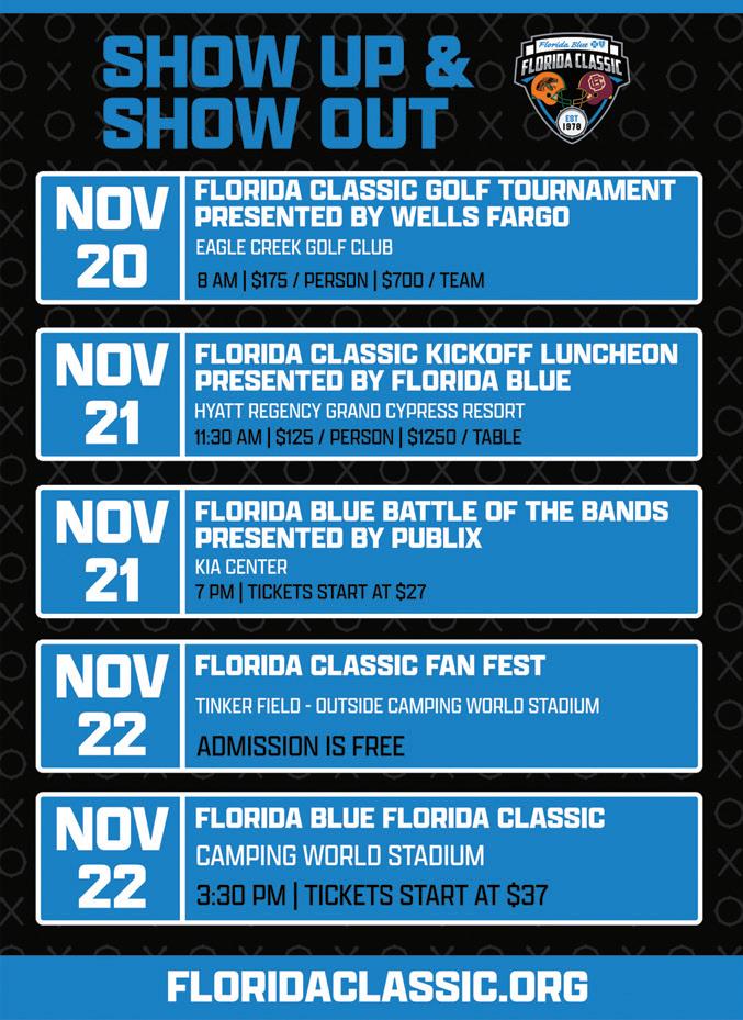 And now for some football! It is Bowl Game Season again! We all eagerly anticipate who will win the decades-long mashup known as The Florida Classic. This game is the epitome of fall sports for many of our readers. The Florida Classic is still the largest predominantly Black bowl games in the U.S. The clash between Florida A&M University (FAMU) and Bethune- Cookman University (B-CU) is one of Florida's favorite events of the year. The excitement begins. Do not miss the battle!