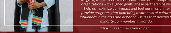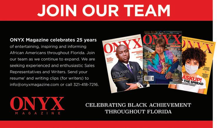 Welcome to this issue of ONYX Magazine. We are preparing to celebrate the most festive time of year. However, we thought we'd bring you an additional reason to celebrate this season: the preservation of history. In our cover story, Eatonville Rising is taking on the task of keeping a great Florida city pristine and on a national scale. We all know about its ties to t or Zor Ne e r to ot er e o re b t t e o o t o m c more e re to visit the city in 2026 just north of Orlando and learn about the secrets they are preparing to exclaim to the world. ONYX M e comm tte to e p t e ort