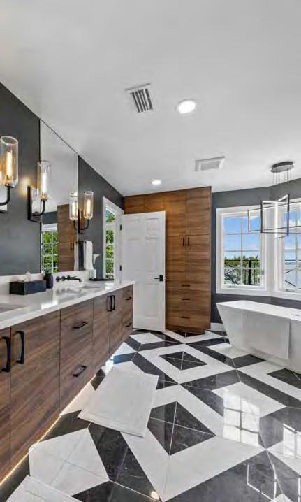 Classic black and white tile sets a crisp foundation, while warm wood cabinetry adds an organic touch that softens the contrast. The geometric pattern creates visual interest without overwhelming the senses, offering just enough rhythm to keep the eye engaged. The grain of the wood brings texture and depth, a subtle reminder that even in the most polished spaces, there’s room for something real and unpretentious. Sleek black fixtures give the space a modern edge without losing its sense of warmth. They punctuate the room with intention, each one selected not just for function but for the way it contributes to the overall composition. and longevity, a reminder that good design never goes out of style.