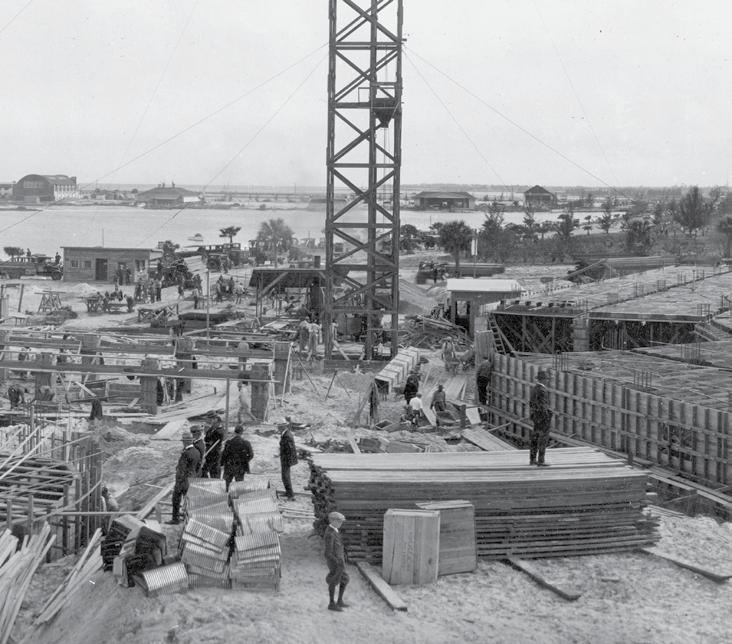 Built during Florida’s land boom era, the Vinoy Park Hotel quickly became one of St. Petersburg’s most iconic waterfront landmarks. The idea for the hotel originated with Pennsylvania oil tycoon Aymer Vinoy Laughner, who purchased waterfront property in downtown St. Petersburg in the early 1920s with plans to build a grand resort. This image, courtesy of the Laughner family, shows the hotel under construction in the spring of 1925. Builder George A. Miller oversaw an around-the-clock effor t as submerged land was filled, foundations poured and walls raised. In just 10 months, he fulfilled his promise to Laughner to open by year’s end. On December 31st, 1925, the doors opened to a Mediterranean-inspired palace on our waterfront for winter guests and visiting dignitaries.