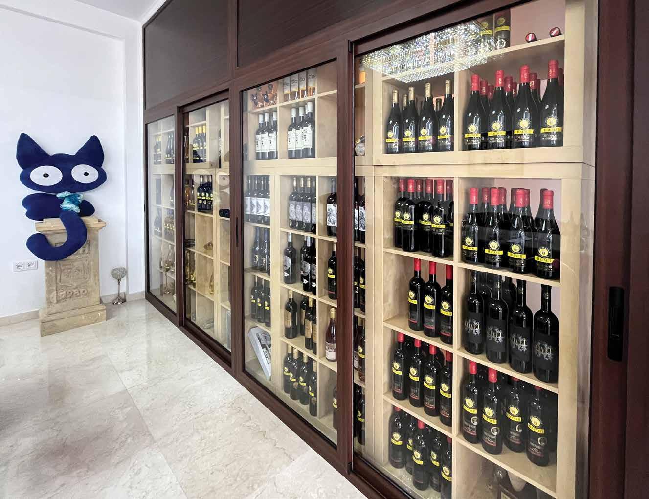 A well appointed tasting room, with wall-to-wall temperature controlled glass cabinets built as a pandemic DIY project, shows the Hafner wines off to the best advantage. This 800-year-old, multiple gold-medal winning