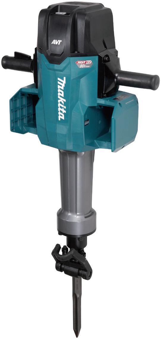 Tough on concrete, not on you. Makita’s hard-hitting Fully Cordless 80Vmax XGT® Demolition Breaker Hammer is equipped with Anti-Vibration Technology (AVT), an exclusive counterbalance system that reduces vibration. The result is more efficient hitting on the concrete and less vibration in the tool. The 80Vmax XGT® Demolition Breaker Hammer HM004GZ01 is engineered to be the most efficient breaker hammer In its class with a 4,400W total power output with a powerful and efficient Makita built Brushless Motor that provides 870 BPM and boasts a staggering corded and petrol powered equivalent 72.8 joules of impact energy with less vibration. Featuring AWS®, HM004GZ01 can be connected to any Makita AWS® compatible dust extractor for seamless AutoStart Bluetooth connectivity of the Tool and Vacuum using the included AWS Chip and optional Dust Extractor attachment. Other features include a maintenance warning function, that warns the user when a tool needs maintenance like machine grease, dual LED lights with pre and afterglow functions, XPT (Extreme Protection Technology), protecting internal components from dust and water ingress, ensuring durability and longer life to withstand the harshest commercial job site conditions. HM004GZ01 accepts commonly used 28.6mm Hex Shank Demolition breaker bits and is the ideal breaker hammer for landscapers, pool installers, electricians, plumbers, masons, remodels, and general contractors seeking a best-in-class industrial quality, fully cordless breaker hammer.