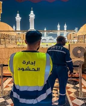 This sensitive task requires meticulous planning and effective execution to prevent congestion and ensure smooth and safe movement. Accordingly, during Ramadan 1447 AH, the Safety Department mobilized a number of volunteers specialized in crowd management, under the supervision of the Safety Division, to support ongoing efforts and enhance preparedness, ensuring the highest standards of safety and prevention of accidents or emergencies.