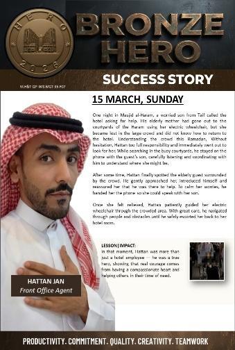 Hattan Jan earned Best Story of the Month for his heartfelt effort in helping a stranded guest in a wheelchair, patiently searching through the crowd until he ensured her safety.
