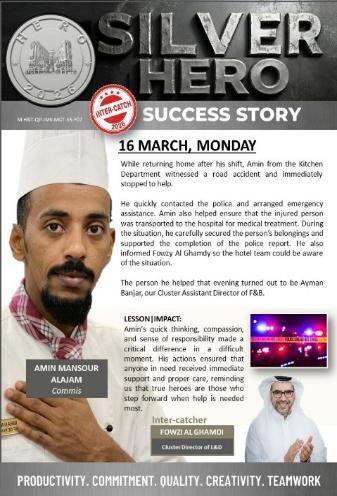 Amin Alajam was also recognized for stepping up immediately as the first responder during a vehicular accident involving Ayman Banjar, Cluster Assistant Director of F&B.