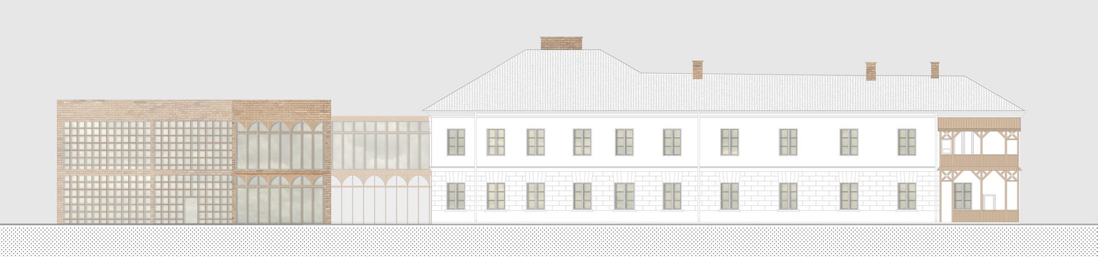 Dismantling of the incoherent additions brings the building back to its originial neoclassical form. The historical character is expressed also in the axiality of windows, clear horizontal divisions, symmetry and proportions of the main corpus. In order to highlight those neoclassical traits, the designed addition has been created by symmetrically repeating the form and proportions of the main block. Between them, a connecting part have been created using the architectural expression of historical wooden porch.