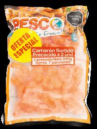 CÓD. 143307 / 448 UND* - P.U.M. 46,67 $/g CÓD. 148448 / 280 UND* - P.U.M. 8.400 $/Und CÓD. 131370 / 604 UND* - P.U.M. 48,44 $/g Aplica Según Disponibilidad CÓD. 128585 / 317 UND* - P.U.M. 22,26 $/g Filete de Trucha Pesco x 450 g Camarón Pesco Precocido 2 Paquetes x 170 g Camarón Precocidos Mixto FrigoGher IQF x 500 g Cazuela de Mariscos FrigoGher x 1000 g $ 16.800 $ 21.000 $ 24.220 $ 22.260 Precio Regular: $24.000 Precio Regular: $30.000 Precio Regular: $34.600 Precio Regular: $31.800 En línea de cajas 30% dcto En línea de cajas 30% dcto En línea de cajas 30% dcto En línea de cajas 30% dcto