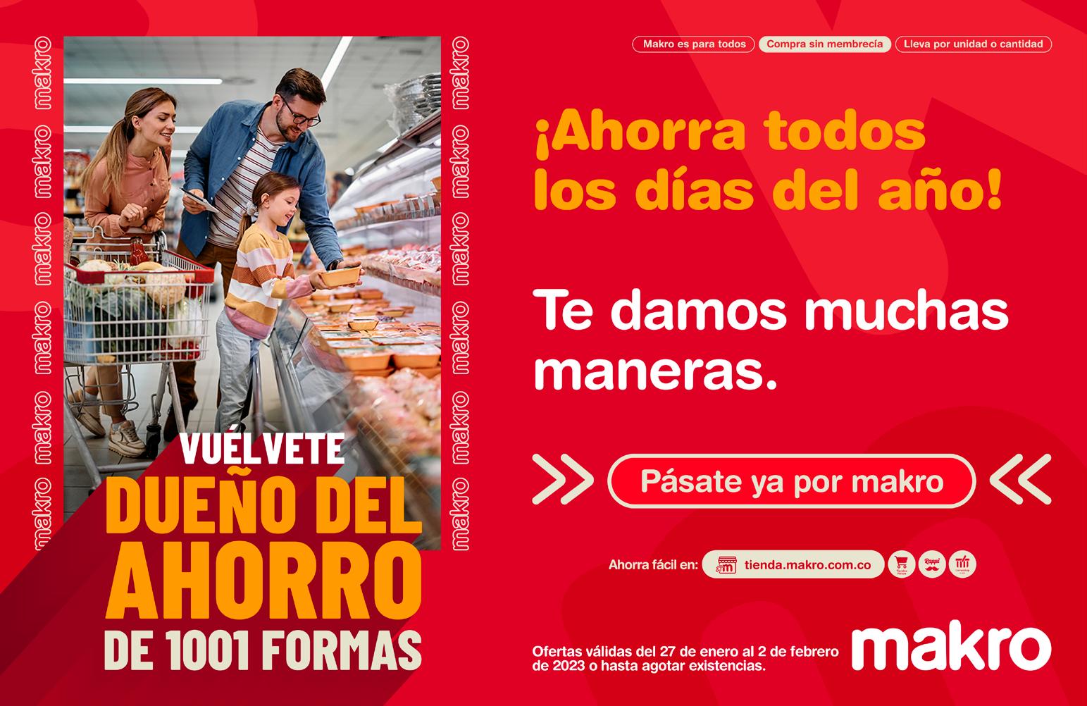 Compra también en: 13 Encuentre una oficina de en las tiendas Makro del país y aproveche grandes beneficios. Banco Falabella Conoce más en www.bancofalabella.com.co CÓD. 107844-136262 / 874 UND* CÓD. 132236-881660-393757-805844 / 3549 UND* CÓD. 141372-141053-141664-118833 / 5875 UND* CÓD. 133273-133274-710983-711152-711321-776048 824694-839566-996970 / 5438 UND* CÓD. 133875 / 996 UND* - P.U.M. 2.147 $/Und CÓD. 130081 / 14426 UND* - P.U.M. 1.181 $/Und Pañuelos y Toallas Faciales Kleenex Referencias Seleccionadas Toallas y Servilletas de Papel Sanitisu Referencias Seleccionadas Papeles Higiénicos Rosal Plus XXG Referencias Seleccionadas Pañuelos Familia Referencias Seleccionadas 10 En línea de caja 25 En línea de caja 20 En línea de caja Protectores y Toallas Carefree Referencias Seleccionadas CÓD. 121246-133227-105425-118147-118143 / 3503 UND* 20 En línea de caja 20 En línea de caja 20 En línea de caja 10 En línea de caja Protectores Nosotras Diarios Referencias Seleccionadas CÓD. 20844-211159-604396-135326-135364-135366-64701-104039122674 / 11328 UND* $11.760 Precio Regular: $16.800 Precio Oferta Toallas Húmedas Huggies Limpieza Efectiva x 120 Und CÓD. 132532 / 1504 UND* - P.U.M. 98 $/Und 30 En línea de caja Toallita Húmedas Pequeñín Referencias Seleccionadas Protectores y Toallas V-Confident Nosotras Papel Higiénico Suave Gold 18 Und x 34 mt Papel Higiénico Aro Hotelero Triple Hoja 18 Und x 25 mt CÓD. 143207-211380-7047 / 4458 UND* CÓD. 135719-137781-135721-135718 / 972 UND* 25 En línea de caja Hasta 50 En línea de caja Hasta Precio Regular: $48.300 $38.640 Precio Oferta Precio Regular: $22.400 $21.250 Precio Oferta MÁXIMO 5 unidades por cliente MÁXIMO 5 unidades por cliente MÁXIMO 5 unidades por cliente MÁXIMO 5 unidades por cliente MÁXIMO 5 unidades por cliente MÁXIMO 5 unidades por cliente MÁXIMO 5 unidades por cliente MÁXIMO 5 unidades por cliente MÁXIMO 5 unidades por cliente MÁXIMO 5 unidades por cliente MÁXIMO 5 unidades por cliente