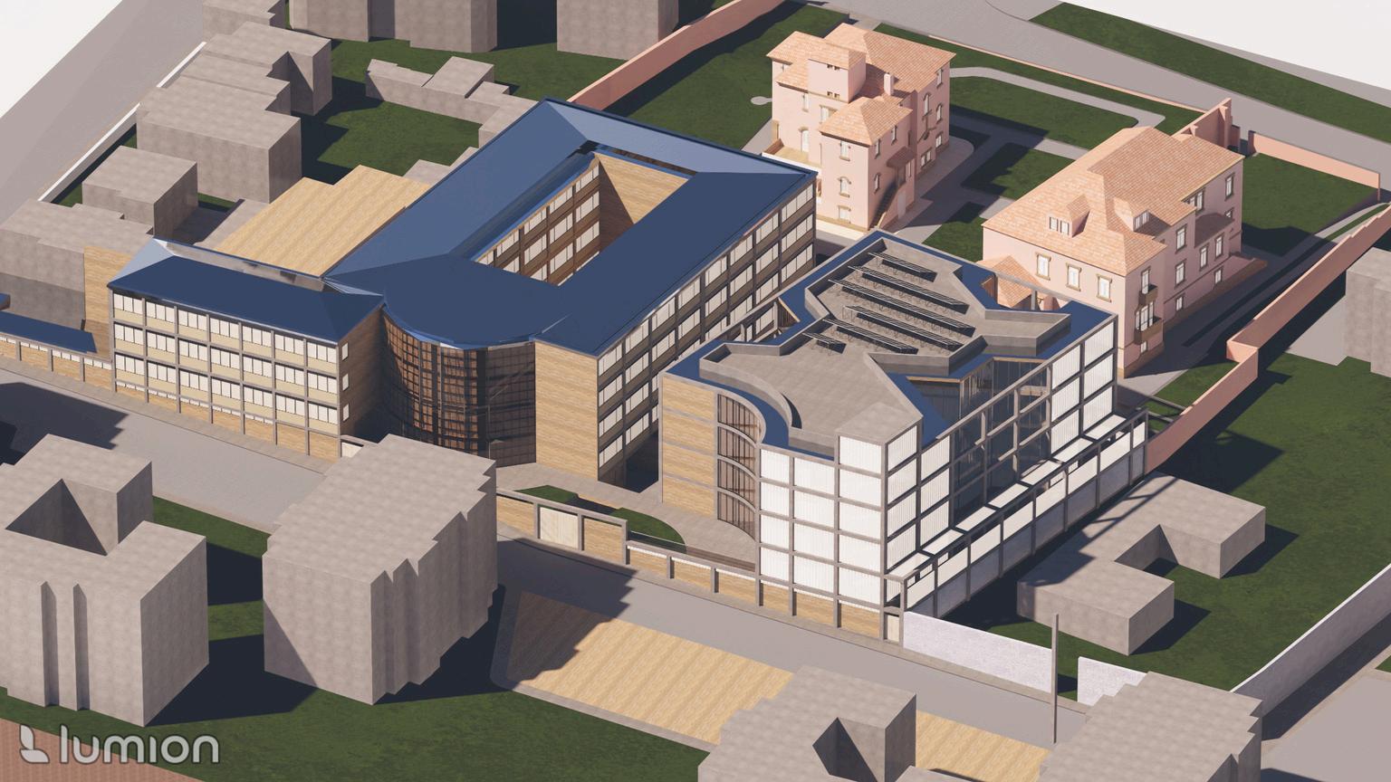 O conceito para a extensão das instalações da U.F.P. parte da essencia do local que é um estabelecimento de ensino e centra-se na evolução com respeito ao legado existente. O alinhamento do edifício adjacente serviu de base para o desenvolvimentodoprojeto.