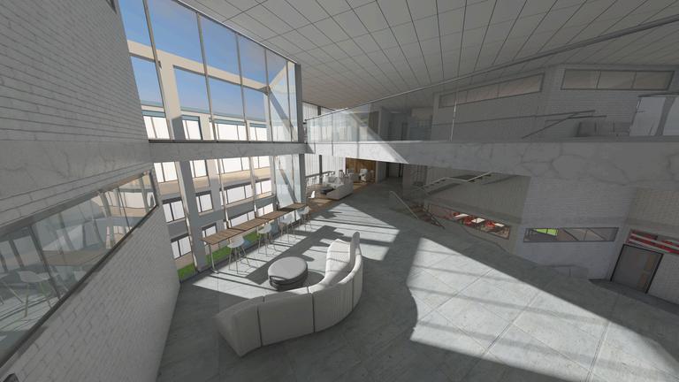 A natureza evolutiva da zona de intervenção influencia diretamente o projeto. O estabelecimento de ensino superior é visto como uma plataforma para o progresso individual e coletivo. O conceito busca integrar continuidade e evolução: mantendo a linguagem existente através de cor, grelhas e vãos, enquanto introduz volumes que quebram a grelha com espaços vazios, simbolizando a inovaçãoeatransformação.