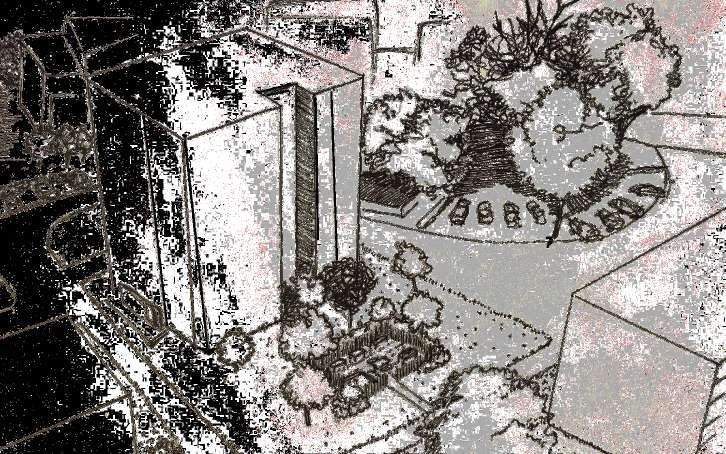 Vuegénéraleduquartier,depuisunetour. Aperçudeladiversitédesessencesvégétales.Envahissementdelavoiture.