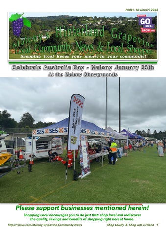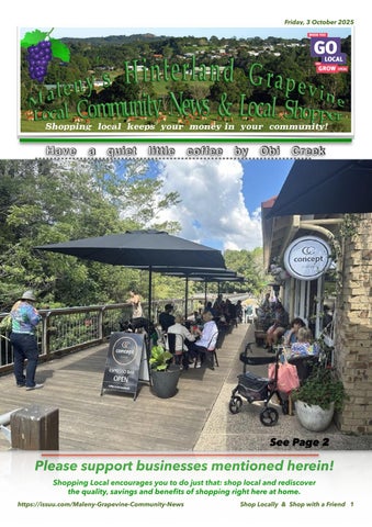 Maleny Grapevine Community News and Maleny District Sports Club News & Results. Maleny is situated in Queensland’s Sunshine Coast Hinterland. Maleny is situated some 90 kilometres (56 ml) north of Brisbane on the Blackall Range overlooking the Sunshine Coast hinterland. The earliest residents of the Sunshine Coast were the Jinibara indigenous people. After the 1980s, the Sunshine Coast experienced rapid population growth and is now one of the fastest-growing regions in Australia. By Shopping locally local residents can help create jobs for locals and maintain the local area’s prosperity. Read a bit about our areas sport, history and facilities. Maleny Paint Place. Maleny Paint Supplies. Maleny. Hinterlandgrapevine. Sports. News. Community Organisations. Maleny Accommodation. Restaurants. B & B. Montville Attractions. Blackall Range. Walks. Shopping. Visit: Mary Cairncross Park. Kondalilla Falls. Baroon Pocket Dam. Gardners Falls. "READ IT IN THE GRAPEVINE"