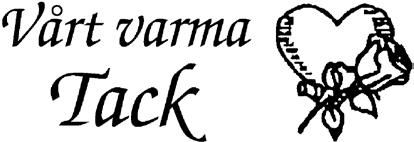 lämnade oss så hastigt i stor sorg och saknad. Ett särskilt tack för den fina musiken i kyrkan och till Arne Söderbäck.