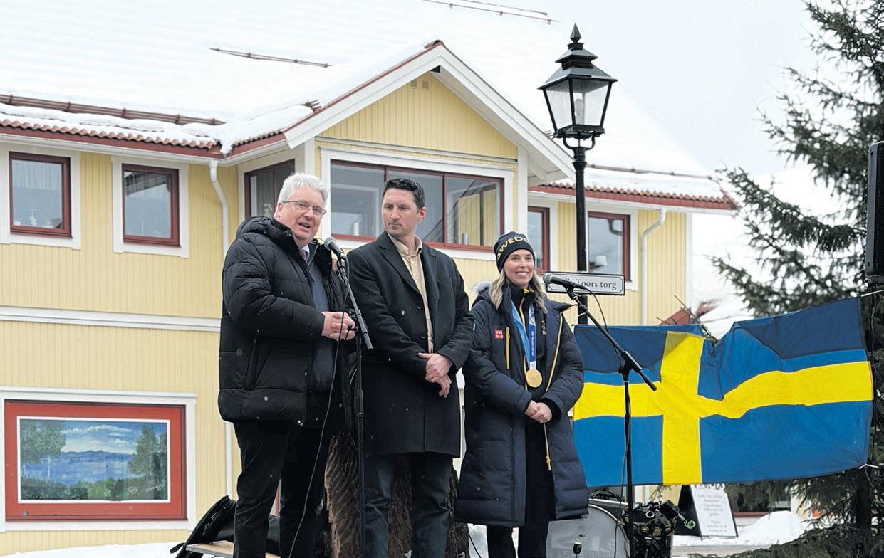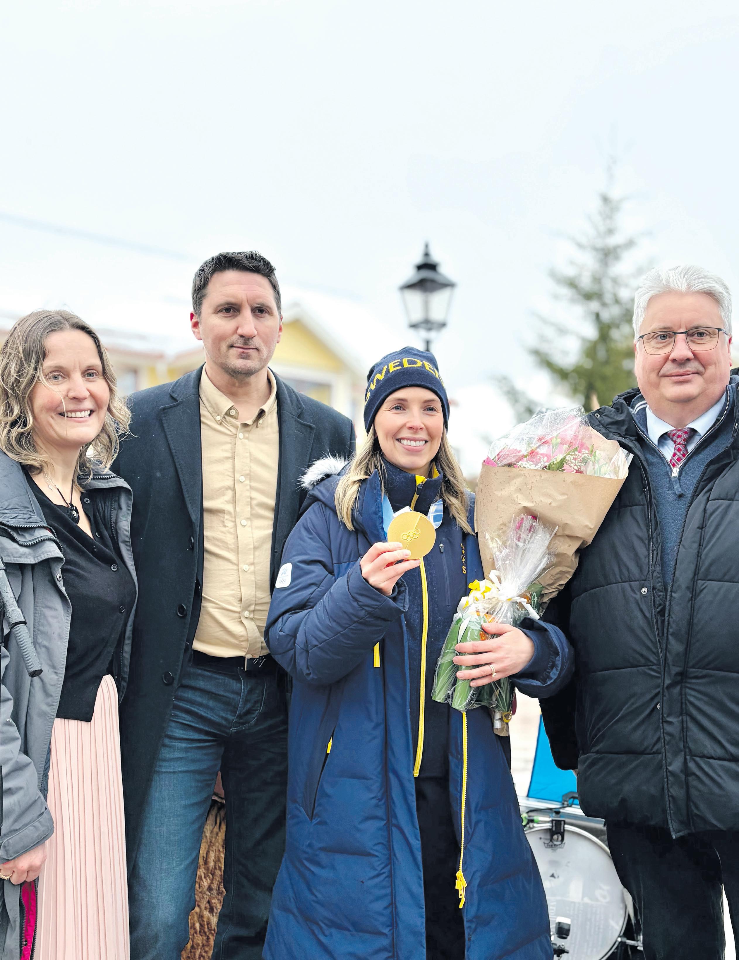 Kommunalråden Hans Unander och Mikael Östling fanns på plats tillsammans med representanter från kommunen för att uppvakta Sofia Scharback (före detta Mabergs) efter hennes OS-guld i Milano-Cortina.
