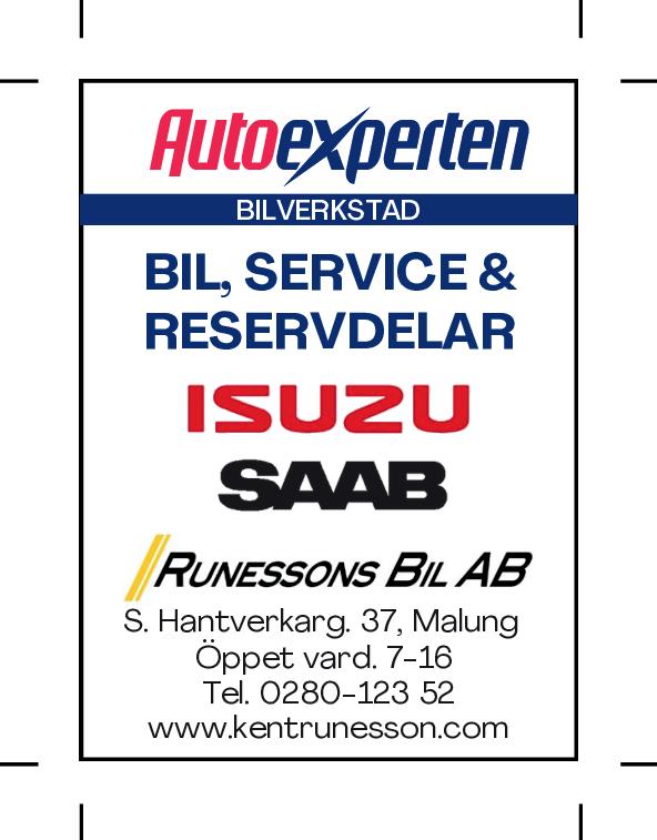 Tel. 0280-711 10 • Lisellska Torget 3, MALUNG • Följ oss på