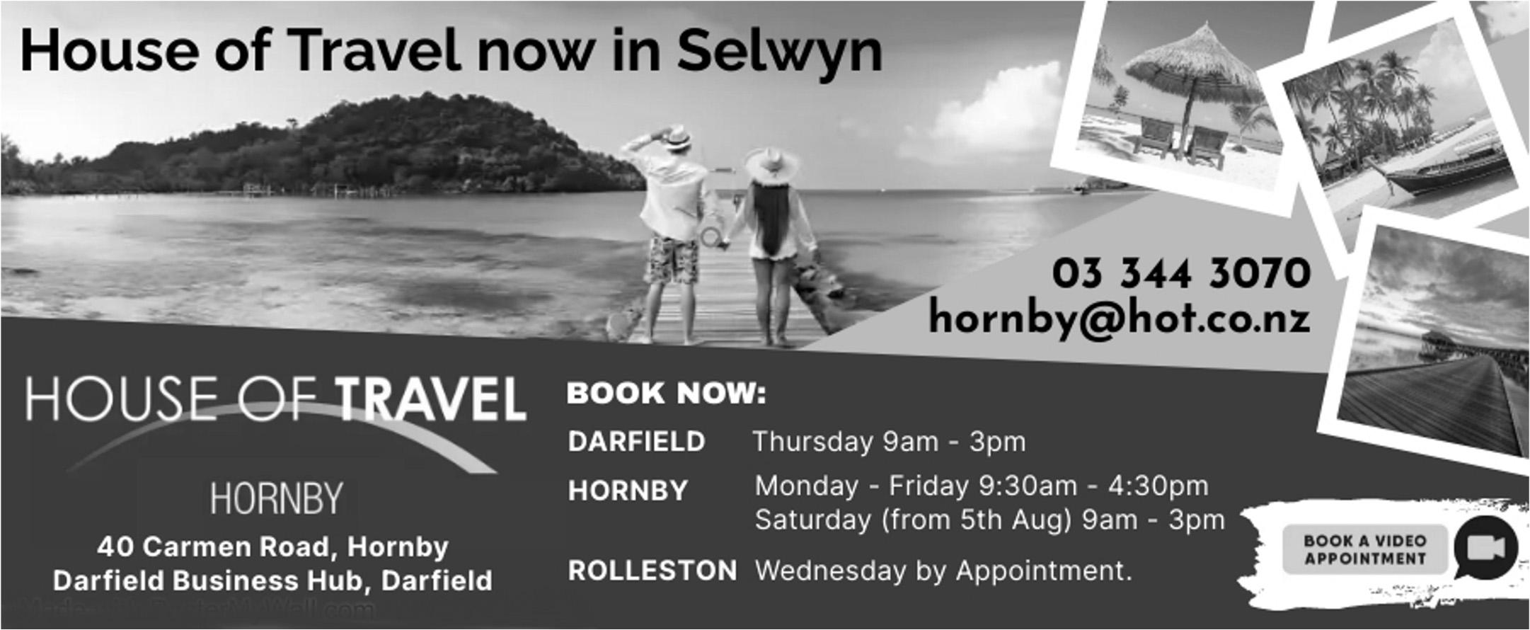 House of Travel Hornby is now in a position to grow and are bringing their valued services to customers, both in Hornby and out into the Selwyn District. To begin with they are running these services by appointment so that they can see as many customers as they can. The more up-take they get, they’ll look to extend the days and hours. Email or phone enquiry is welcome and they can arrange video appointments.