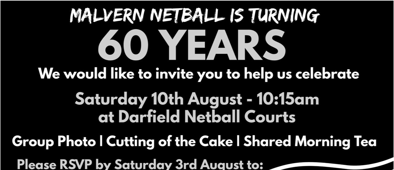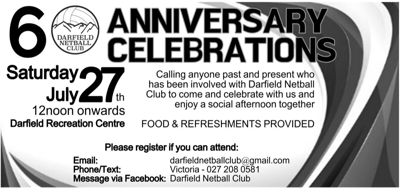 27July 12noon 60yrsAnniversaryDarfieldNetballClub DarfieldRecCentre
