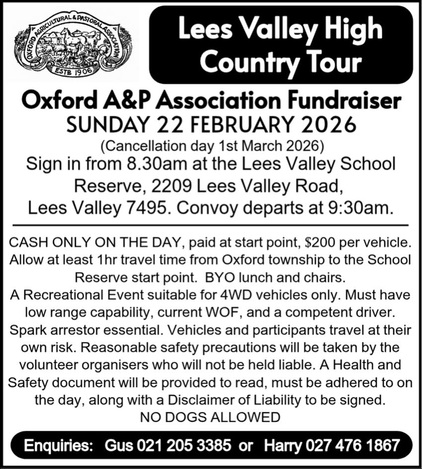 For further information, contact Rex Smith 021 075 7145 or rs@darfield.school.nz