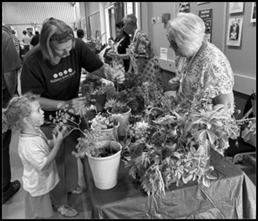 Sue Stokes with her granddaughter Charlotte (4) making a tussie mussie with Marie Robinson at the Sheffield Garden Club table. Sue says it was lovely to see people walking around the hall with their flowers. “It really spread the love.”