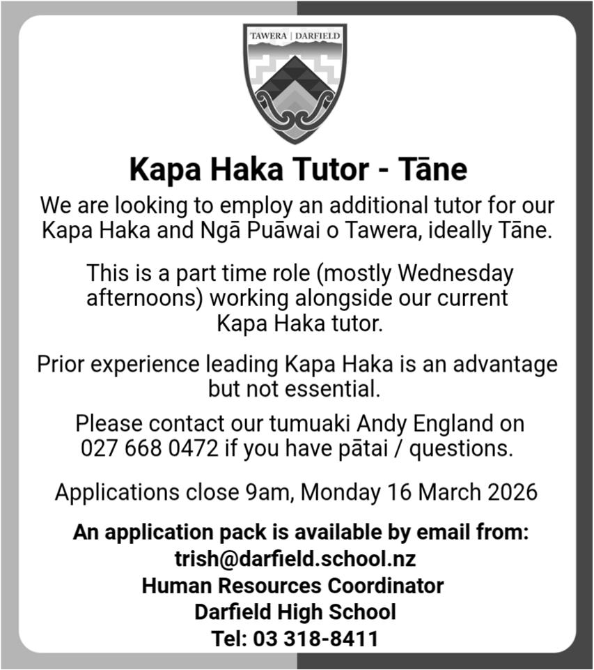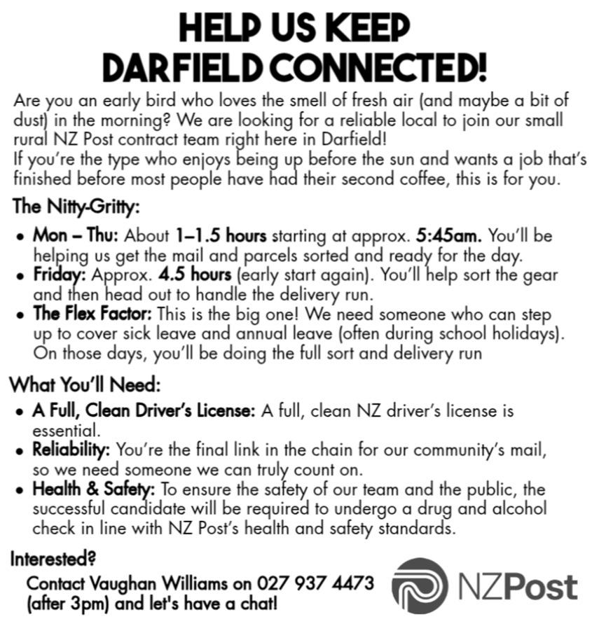 Contact Dave on 021 142 0567 or email: pearsondavid106@gmail.com