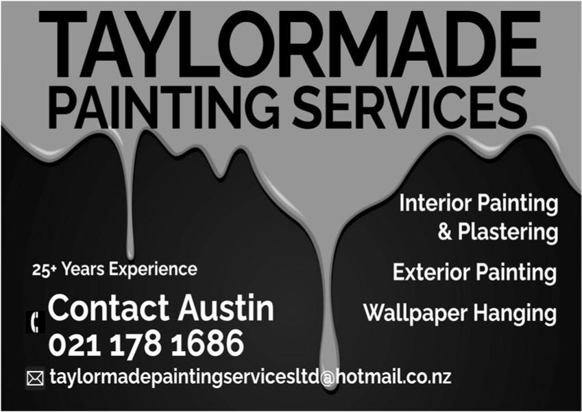 I WILL I WILL save you time. I offer a greatserviceonallthosejobs you've been meaning to get done. Fencing, gorse control (spray or cut and swab), other spraying, chainsaw work, mowing, gardening and general lifestyle block tasks. We'vegotwhat’sneeded,just give me a call. H Donaldson, 0277899532.