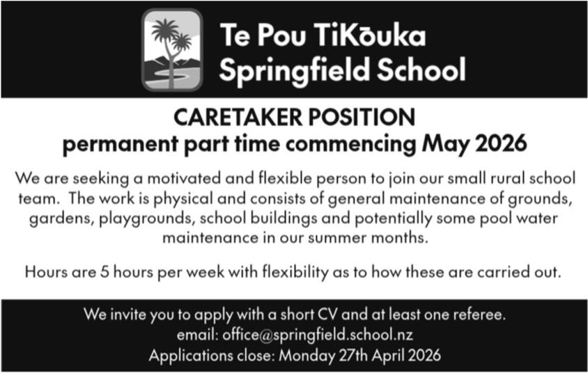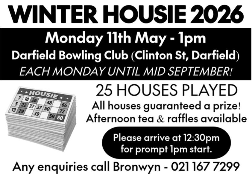 Health New Zealand is inviting the Darfield community to a publicmeetingonThursday23 April, from 7–8pm at the Darfield High School Main Hall on MacLaughlin Road. The meeting o ers residents an important opportunity to hear updates and have their say on the future of local healthservices.