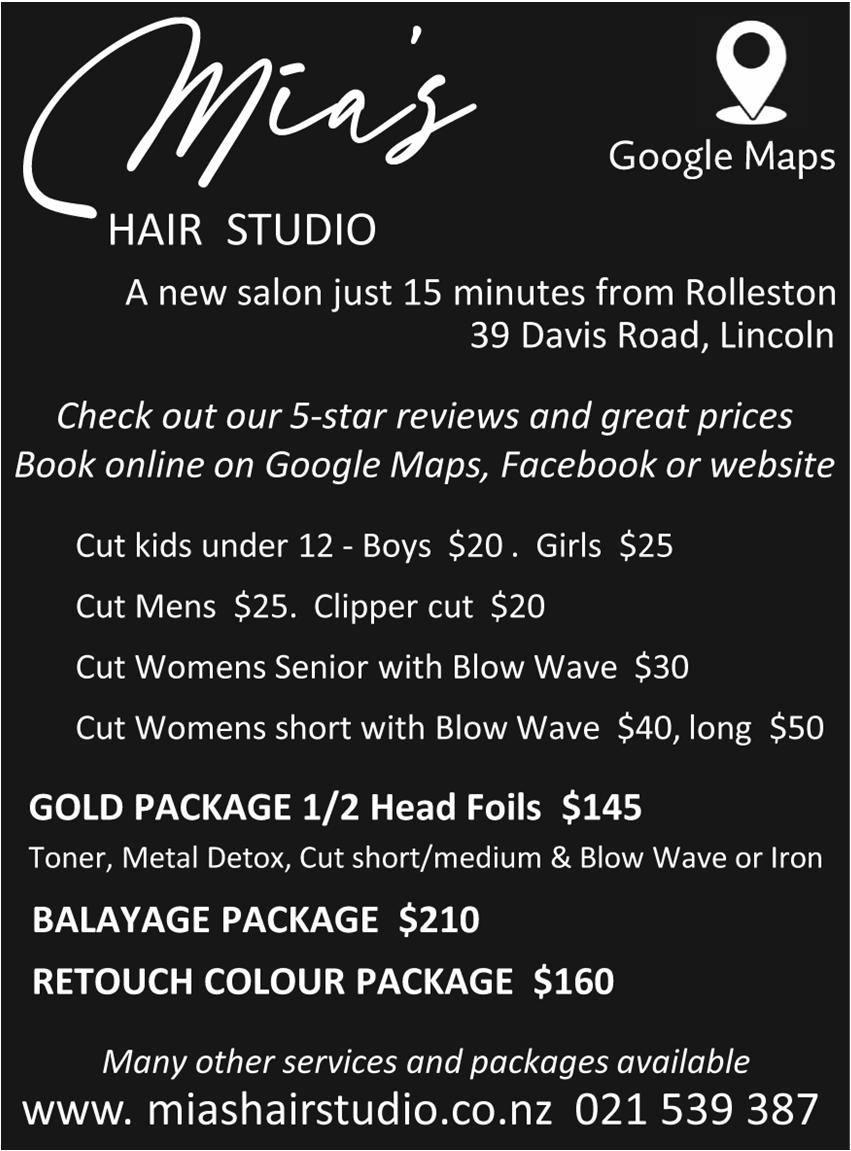 • Full lube servicing & maintenance • All mechanical repairs • Light engineering repairs • Fixed plant maintenance • Pre-COF’s ROLLESTON TRUCK CENTRE LTD 790 Jones Road, Rolleston (In the big red building on the corner) PHONE: 03 347 4234 Call Rini on 027 451 7300 Will pay good money for the right trees - any species considered! WE CAN START IMMEDIATELY! Clean & tidy workers. Fully qualified crew for the job! LOOKING FOR Phone: 03 347 8555 Website: www.mclcontracting.co.nz Specialising in lifestyle blocks, making conventional and medium square hay and medium square baleage! Servicing West Melton, Rolleston & surrounds for over 30 years! Page 8 Wednesday 7th December 2022