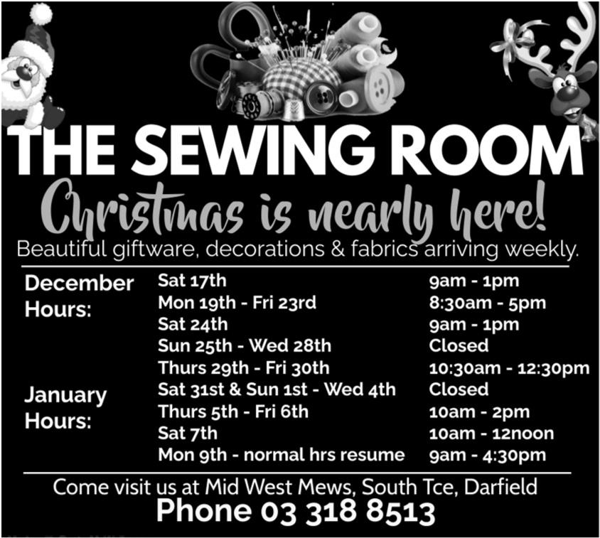 • CompleteDentures • Partial Dentures • Immediate Dentures • Relines • Repairs&Additions Rachael Knight Clinical Dental Technician Phone 347 7477 1081 Goulds Road, Rolleston www.lifestyledentures.co.nz “Buildingmyreputationon greatserviceandresults!” Page 2 Wednesday 7th December 2022 Buy online at www.salmonheaven.nz Open: 8am - 5:00pm weekdays| Eftpos Available 165 Hororata Road, Hororata Ph 03 318 0895 | www.salmonheaven.nz CHRISTMAS OPENING HOURS ♦ SATURDAY 10 DEC From 10am - 2pm ♦ SATURDAY 24 DEC From 9am - 12noon