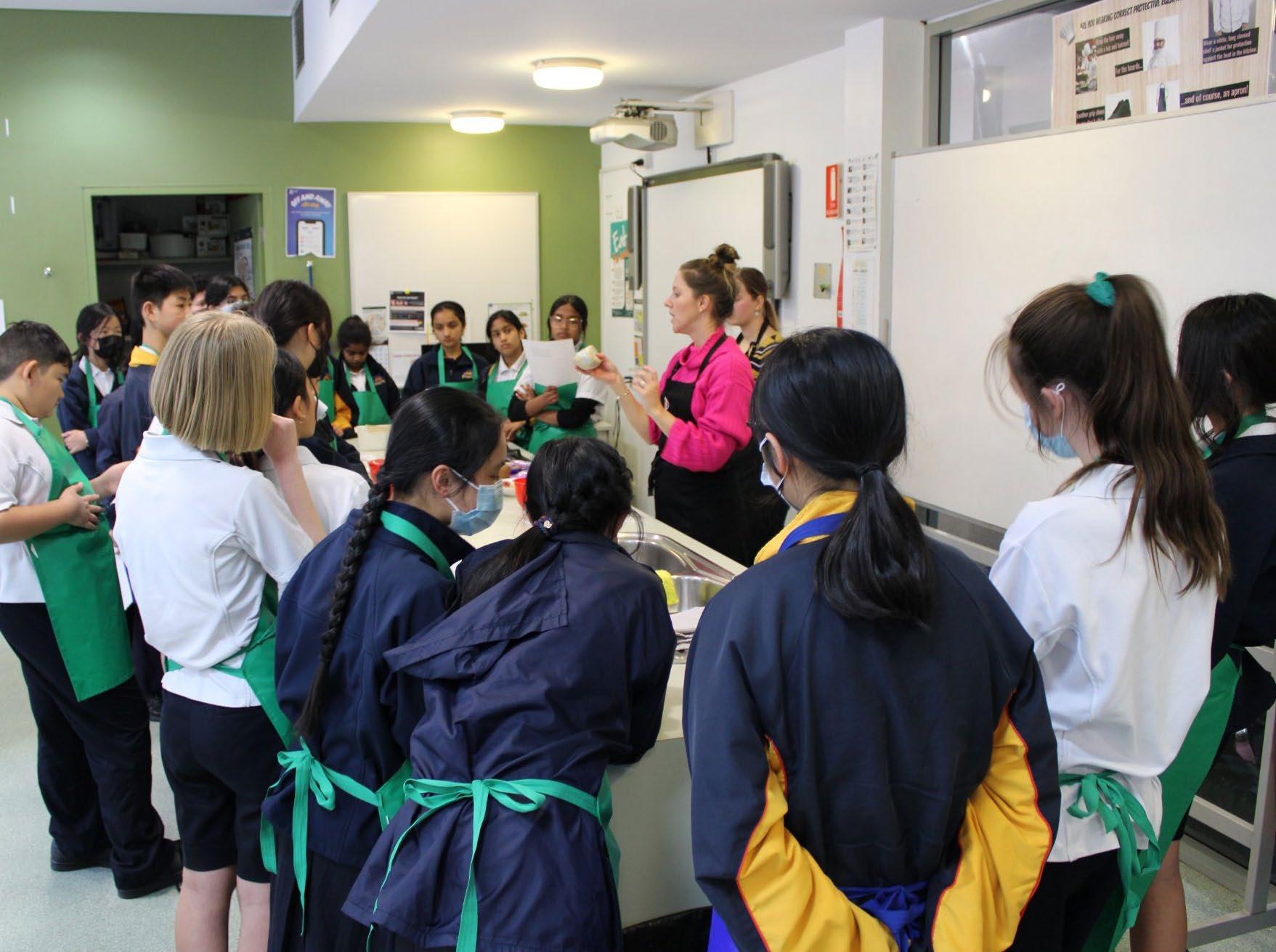 Students then move in a variety of ways to match the theme – widening or narrowing their body, twisting, turning, bending, stretching, balancing, rolling and transferring body weight.