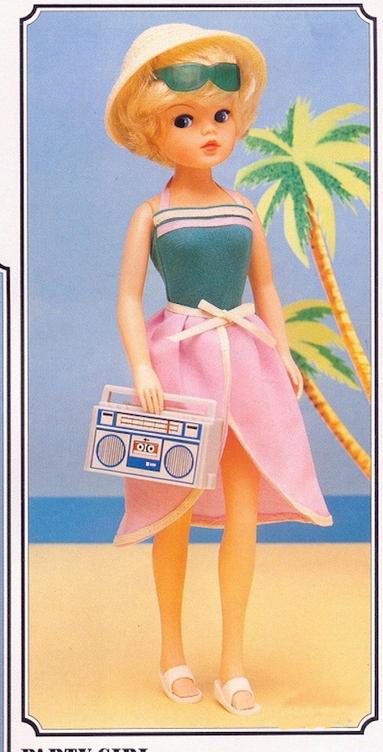 The adverts in 1983 for Holiday Girl (44763) asked who will be your best friend during the holidays? Well, it has to be this gorgeous Sindy who is most certainly dressed for the part Holiday Girl came with a new jade green swimsuit and a lilac wraparound skirt Her look was completed with a 'straw hat', oversized sunglasses and a radio She cost approx £5 99 in 1983