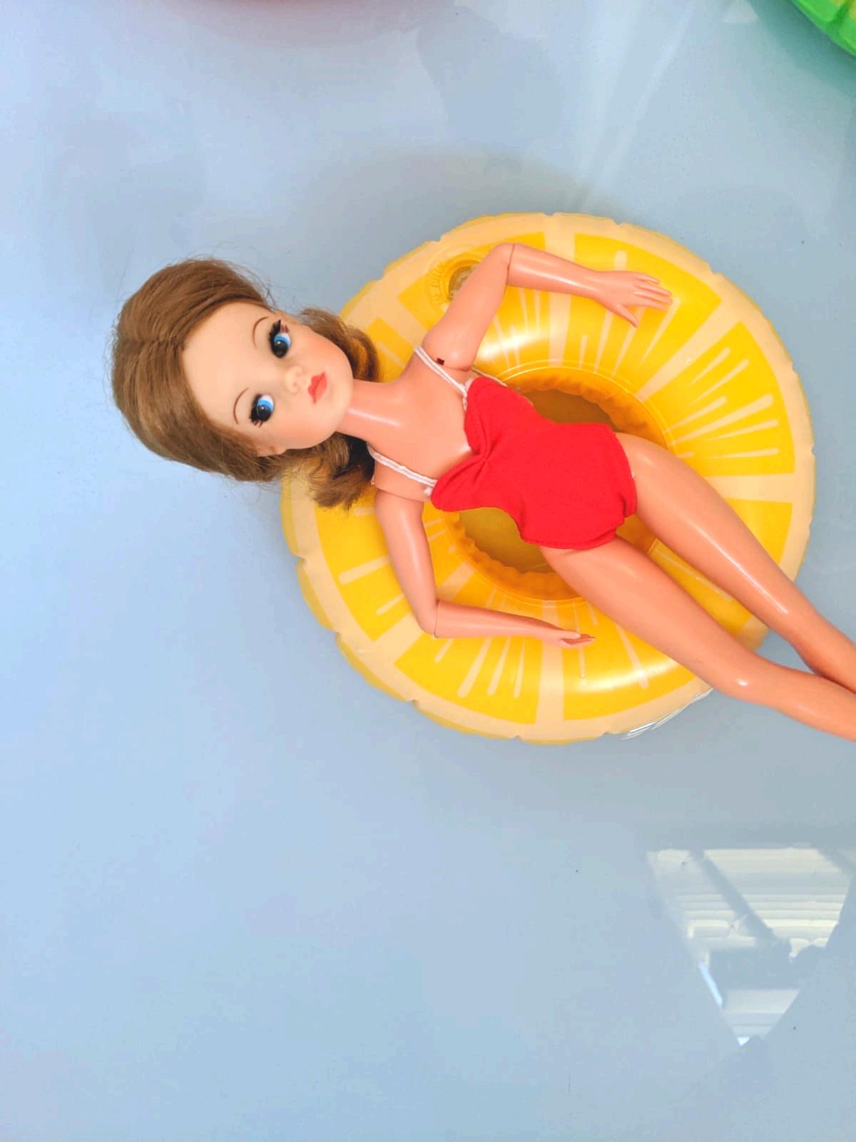 TOWELS ww etsy com/uk/shop/SindyCoutureShop PARASOL Maileg at www folkinteriors co uk FLOATS (drink holder) www amazon co uk SUNGLASSES www aliexpress com FLORAL JACKET Vintage Sindy SUN CREAM Vintage Sindy